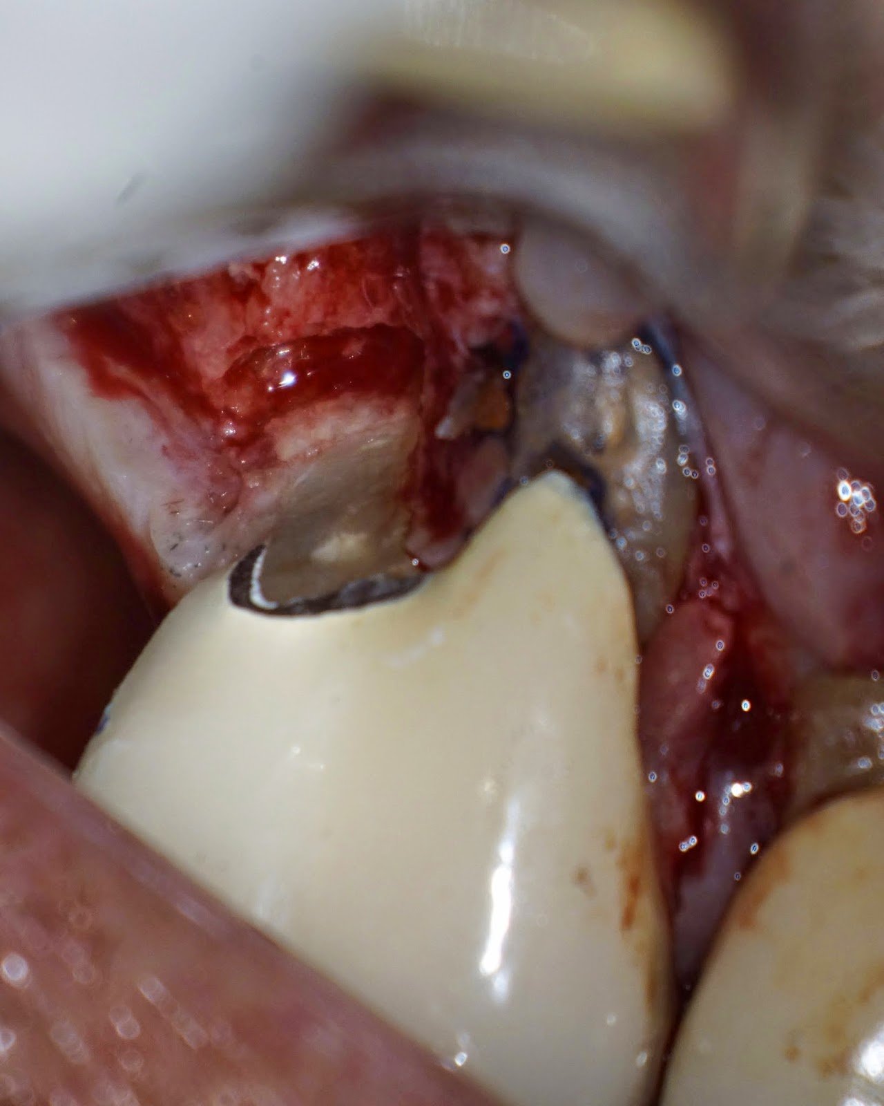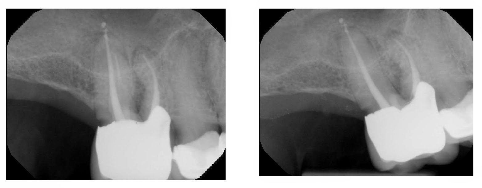 Root amputation is not a commonly performed procedure in my practice, but when it is, I like for it to look like this. In this case, the tooth is non-mobile – despite the bone loss around the DB root. While the distal margin is open, it is not carious and patient is not planning to replace the crown at this time. Pt understands that this procedures extends the life of the tooth. I explain that the short term prognosis is good. If the tooth does well, then replacement of the crown can be considered.