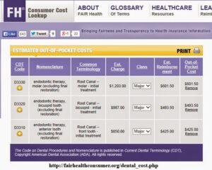 As a consumer, this is what FAIR health says should be charged for endodontic treatment in my zip code. If I have no insurance, this is what I should expect to pay.